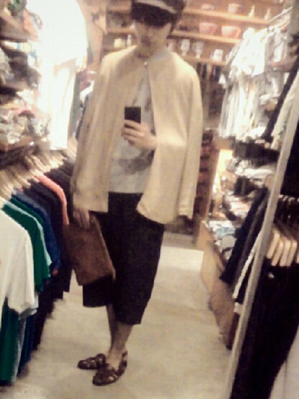 いやー、今日も暑いですねー かき氷とかアイス食べてクールダウンしなきゃね(笑) さてさて今日のコーデは 大好きな茶系、地味目な感じです! 最近のトレンドのガウチョパンツは動きやすいし涼しいし色はカーキだから茶色との相性もバッチリ( ̄▽ ̄)b トップスはコーエンのフルーツ柄のTシャツです グレーだから使いやすくて。とっても着まわししてます(笑) アウターはベージュでこれはカーディガンみたいなマントみたいなポンチョのよーなかなり特殊なやつだと思います 古着屋で見つけたとき一目惚れしたやつですな♪ とまー、色合い的にちょっと季節感が秋っぽくなってるけど 地味でOjiらしくレトロに着たいとこーなるんだよね(笑) それでもレトロ好きとか古着が好きな方は是非仲良くなりましょ(。-_-。) Twitter @OSHARE0322