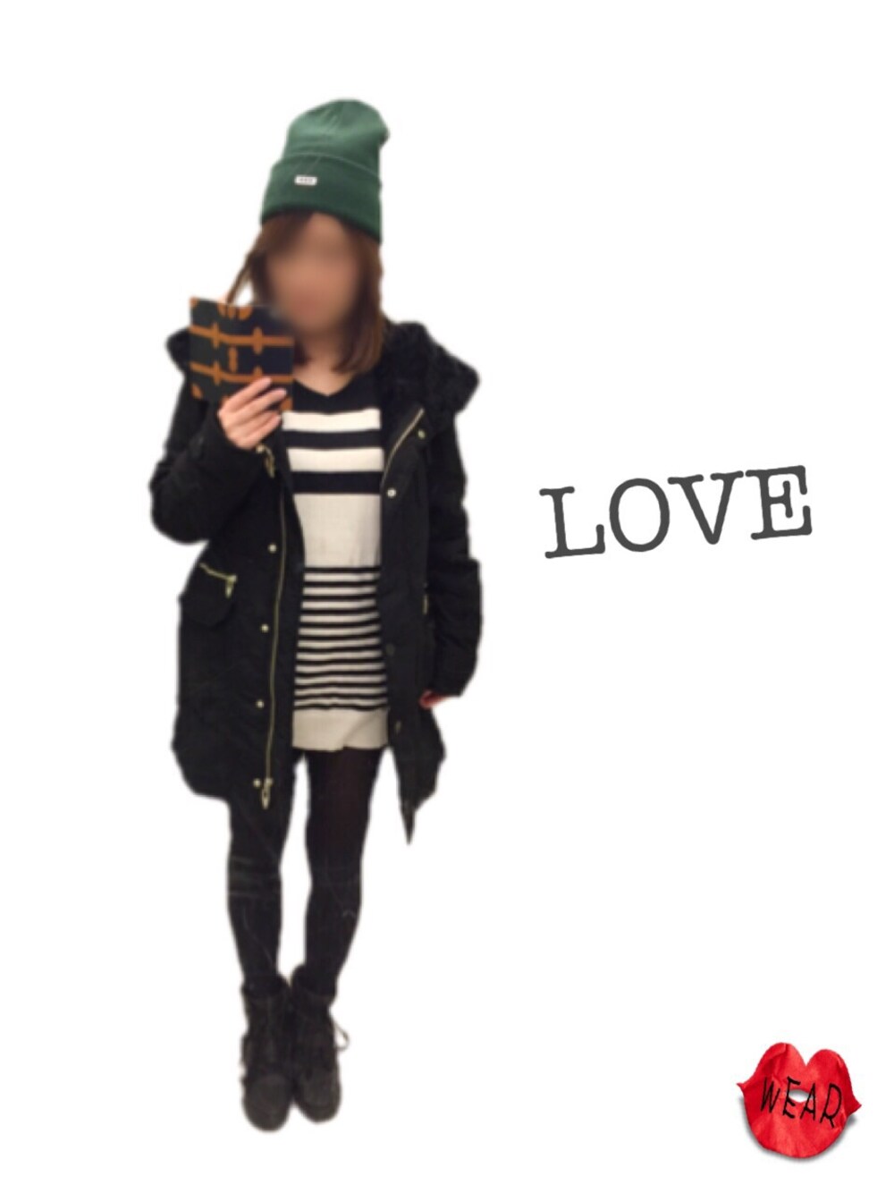 緑のニット帽で、差し色❤︎❤︎❤︎