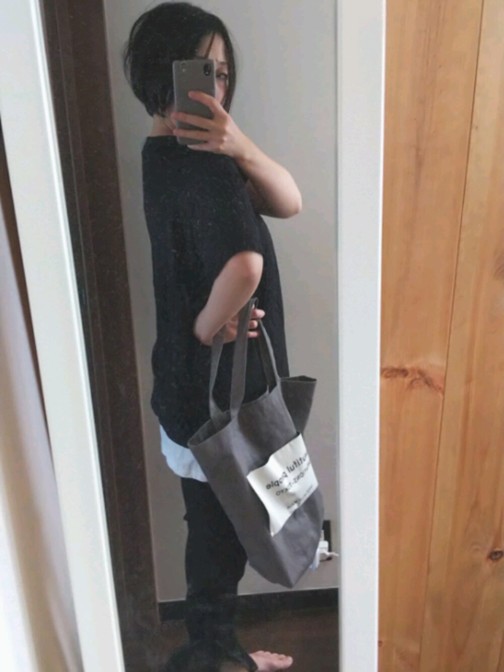 おはようございます。 いつもありがとうございます😀 思ったより毎日涼しくて過ごしやすいですね~ そんなわけで、ちょっと重めカラーでモノトーンコーデ。 メンズのTシャツですが、いわゆるパックTなので柔らかくて気持ちいいです。首もとにすこし柄?文字があって完全無地じゃない感じもお気に入りです(*^^*)