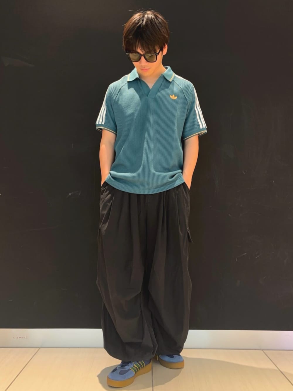 M.K(アディダス オリジナルスショップ GINZA SIX)のポロシャツ「アディダス オリジナルス ワッフル ニット ポロシャツ / アディダスオリジナルス adidas Originals」を使ったコーディネート