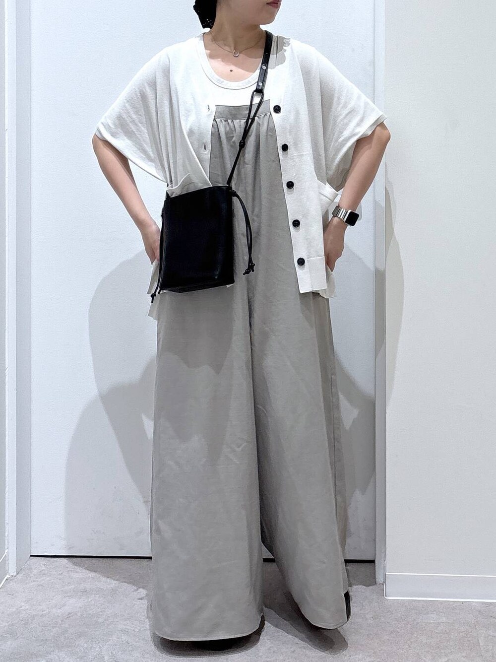 *カーディガン* サラッとした肌触りのサマーニット! ゆったりとしたリラックス感のあるシルエットで 体形カバーもできるのが◎ 羽織りとしては勿論、 ボタンをとめてプルオーバーとしても 着ていただけます! *サロペット* 腰回りがカバー出来るゆったりとした ワイドシルエットで、ストレスフリーな着心地! 胸元のギャザーが可愛いです! 後ろのボタンで着丈の調節が可能✨