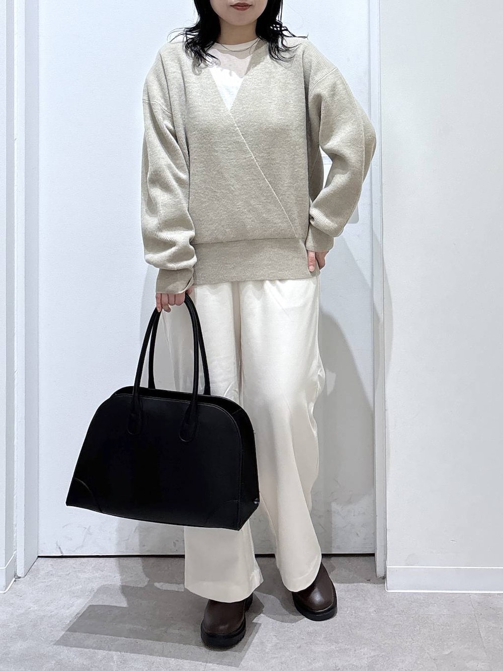 カシュクールデザインがお洒落なニットコーディネート🤎