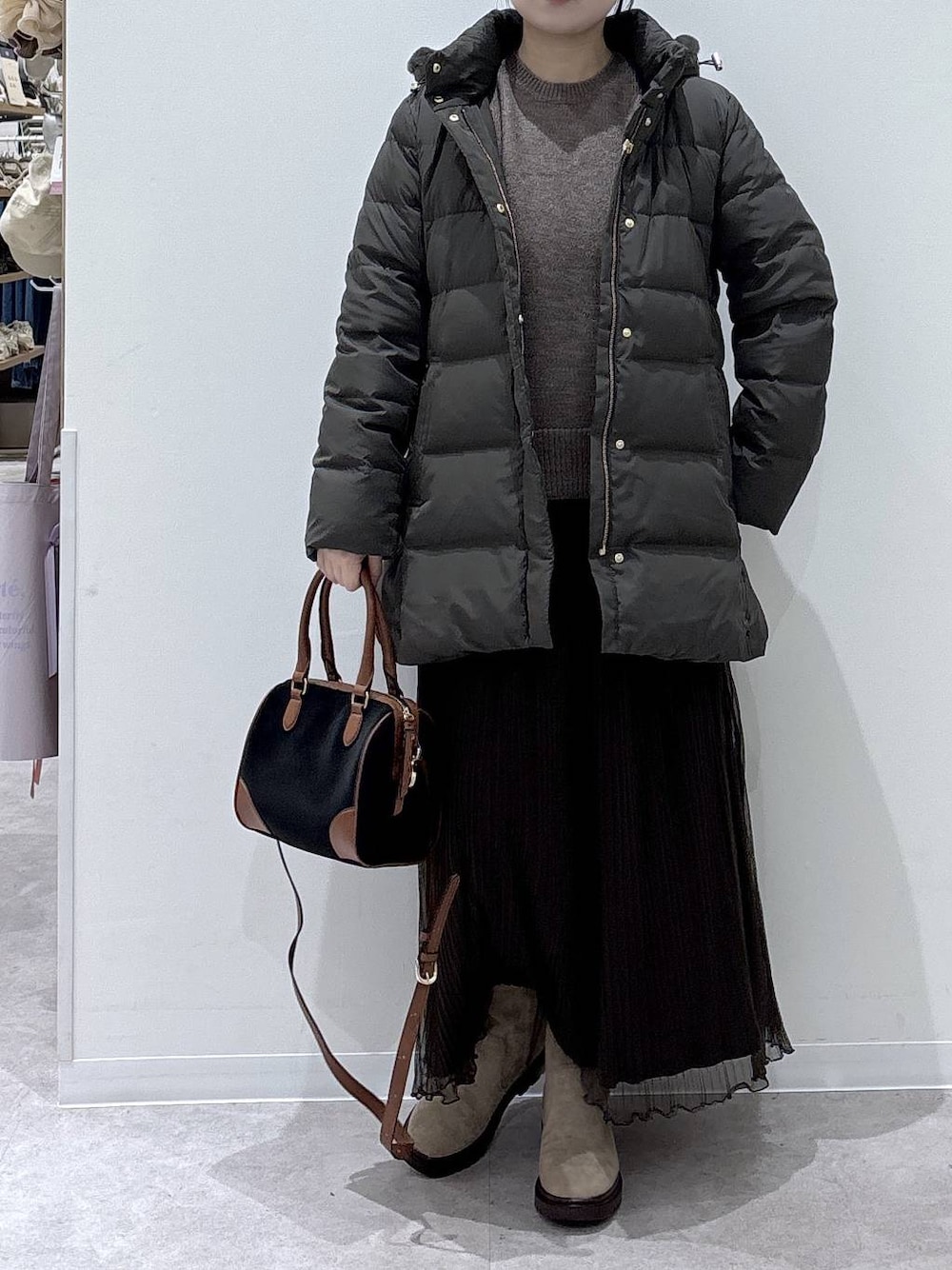 ダウンコート×ニット・スカートセットコーディネート🤎