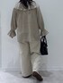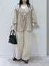 おすすめポイント☝️💖 ブラウスは大きめフリルが着映えするデザイン! 襟は大きめですがVネックデザインで顔周りが すっきり見えます! パンツは綺麗なストレートシルエットで 合わせやすさ◎