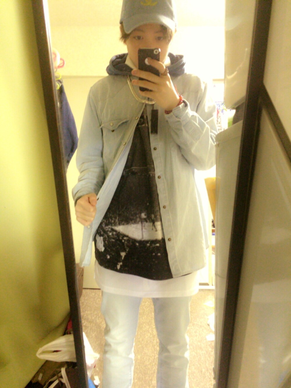 デニムで全体に統一感を出してモノクロのシャツをチラ見せって感じで 大きめのネックレスでアクセント