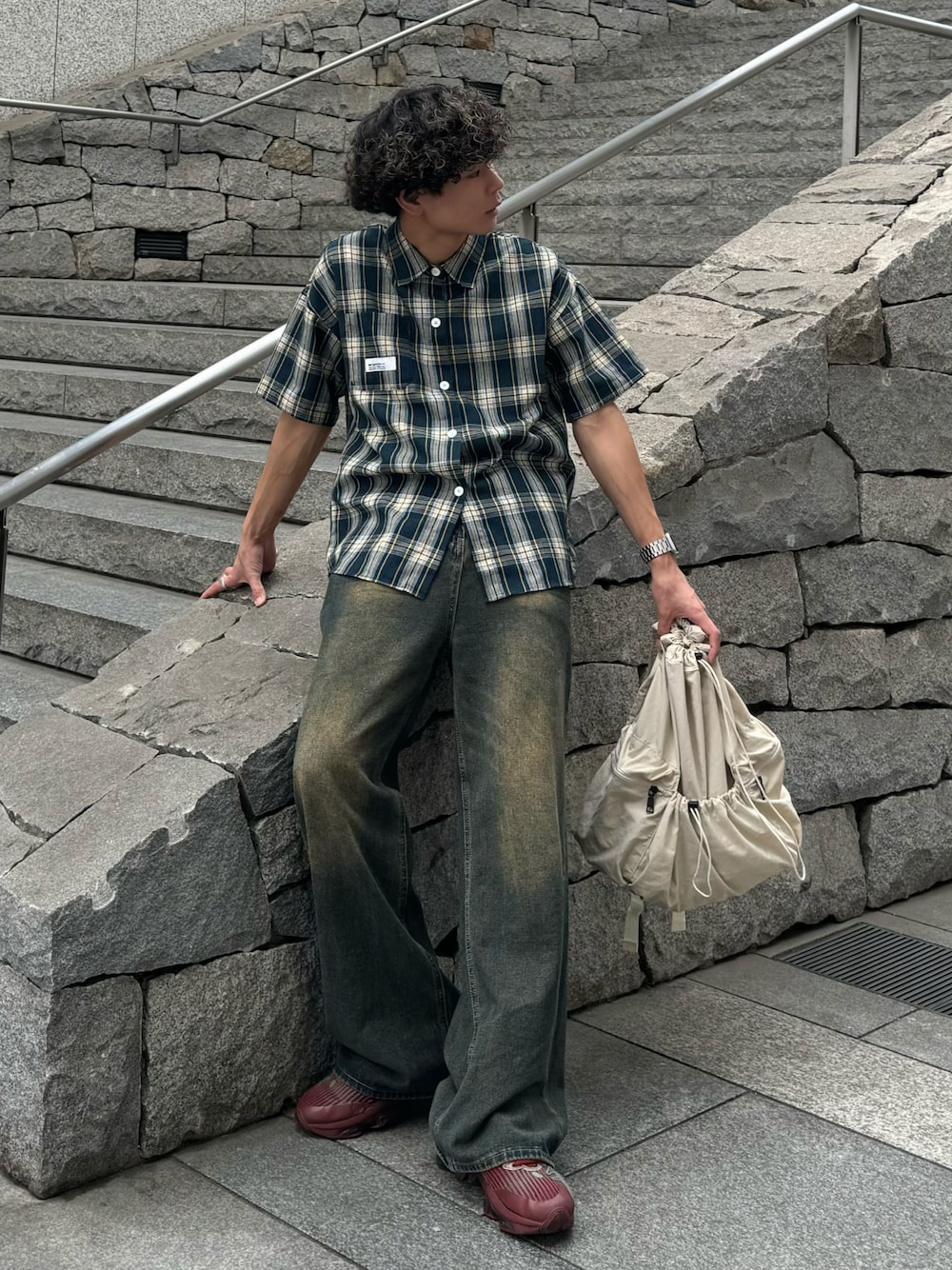 最近は古着やヴィンテージライクなアイテムがキテると思うので、カジュアル要素強めにシャツで綺麗めもプラスしたスタイリングを組みました。