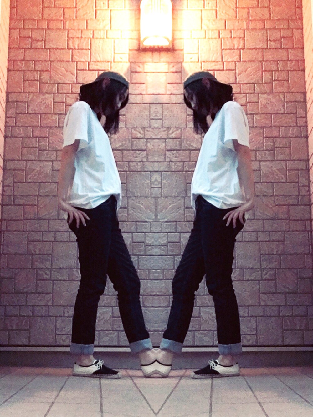 メンズライクな服も好き🙆🏻🙆🏻 パパ 、Tシャツ勝手に借りてごめんね😜