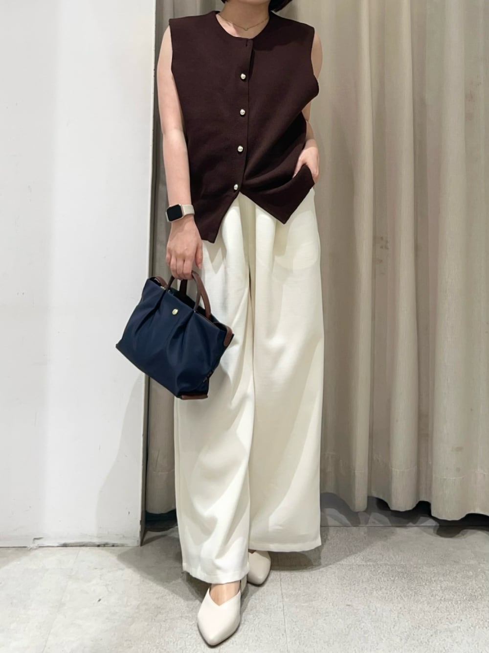 shin__un(natural couture)のニット/セーター「金釦ノースリきれいめニットベスト」を使ったコーディネート