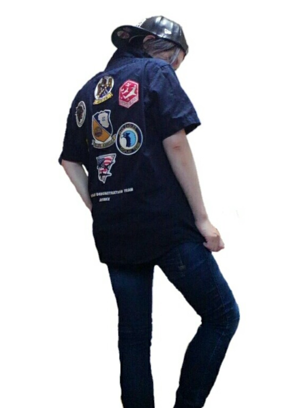 ネイビー×デニム×白☺ もはやmen's(  ̄▽ ̄) またもや好きなシャツの後★ ワッペン一杯のmilitaryシャツ🎵 皆様台風お気を付けて。