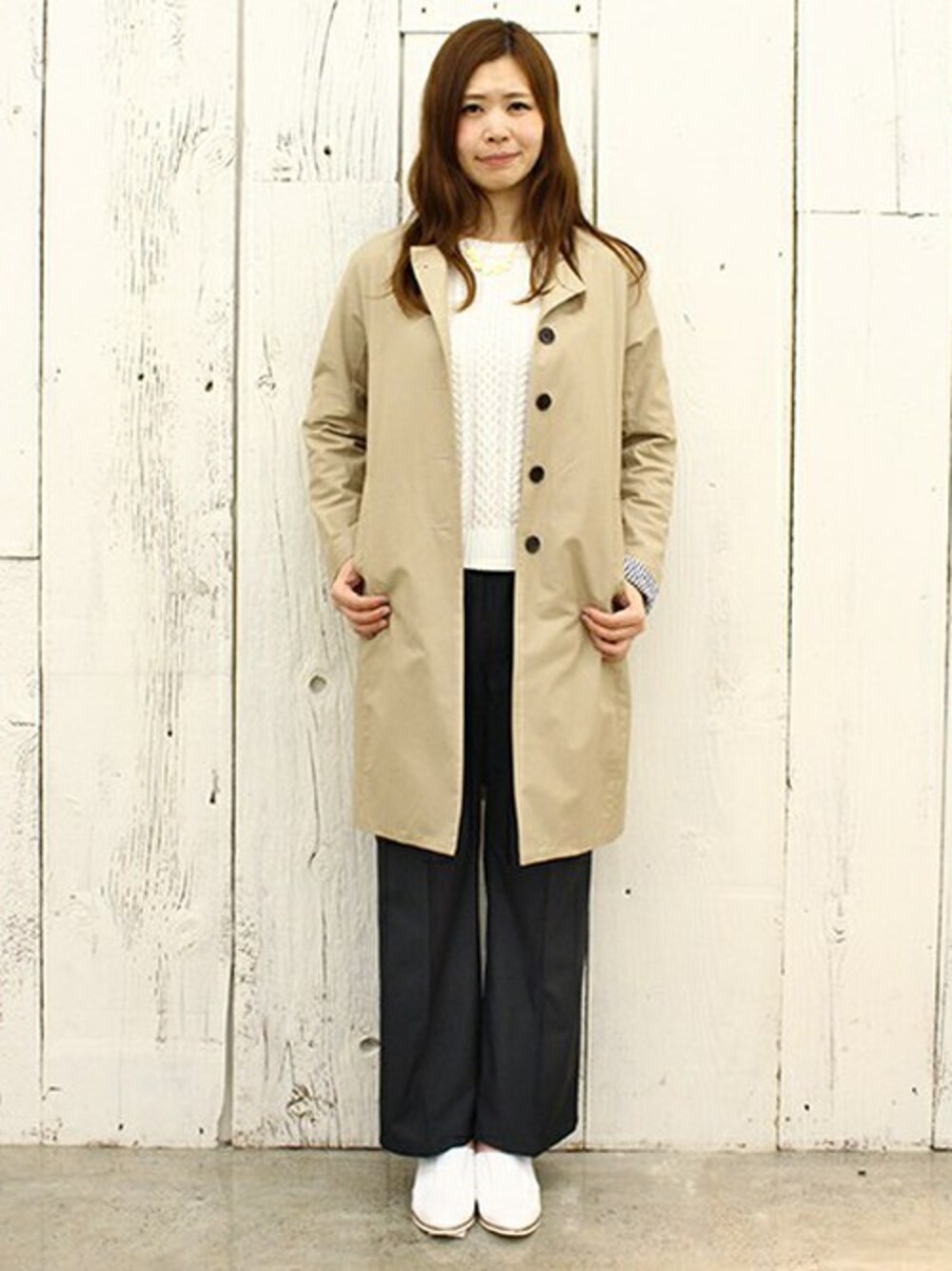 今期のトレンドアイテムの一つでもあるワイドパンツを使用したスタイリング。 春のメインアウターでもあるニットとトレンチコートと合わせれば今年らしいイメージに仕上がります