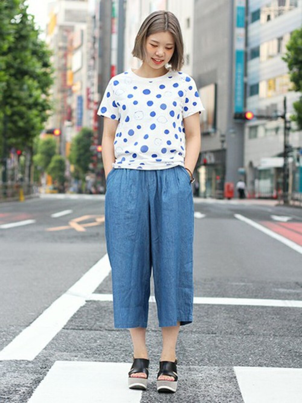 映画『バケモノの子』とのコラボアイテムでのコーディネート さりげなくドットプリントの中にキャラクターが描かれた1枚は 普段使いもしやすい便利なアイテムです。