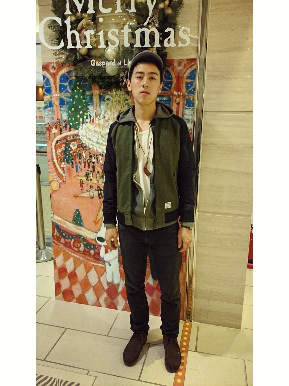 特殊帽子跟皮質項鍊增加重點! #背心SF #墨綠連帽外套no brand #拼接夾克海盜 #褲子hurley #帽子nike