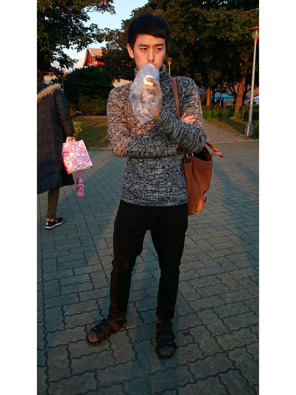 大面積高領毛衣!芝麻糊的港覺。涼鞋配襪子一下
