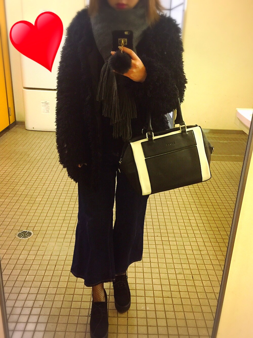 ブラックコーデ♥ CHEDELのモコモコアウターが 可愛すぎる♥ トップスはguのスウェットでプチプラ♥