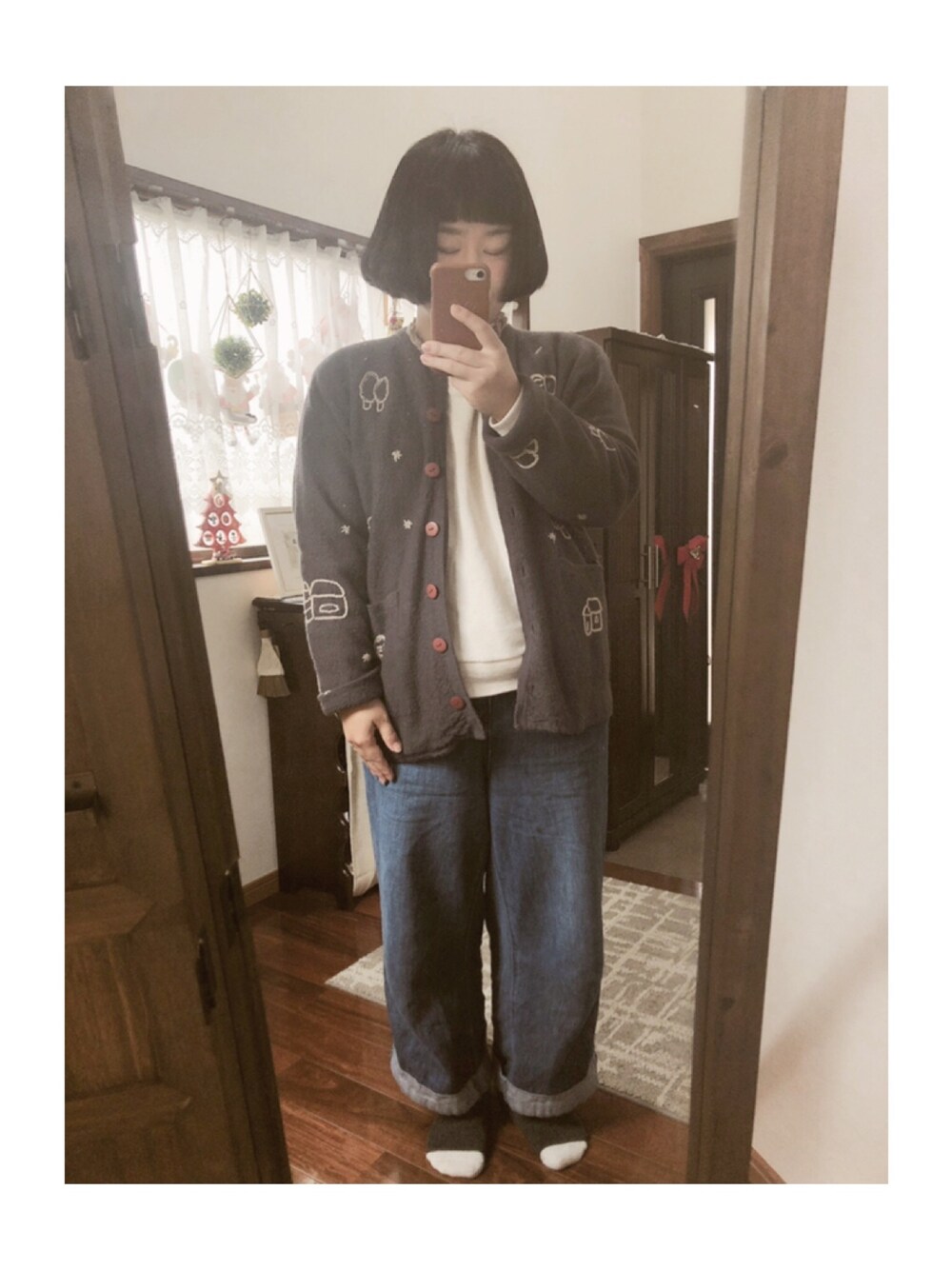 帰省おしまい! カーディガンはおうちの刺繍いり! おばあちゃんがくれました。