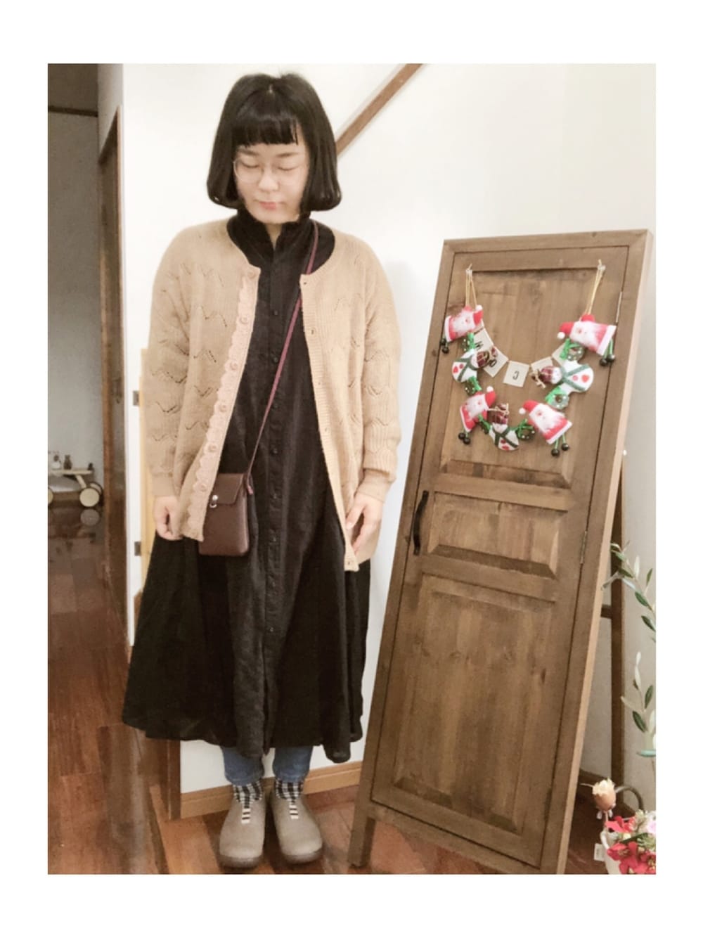 マメӦのワンピース「レース切替ワンピース」を使ったコーディネート