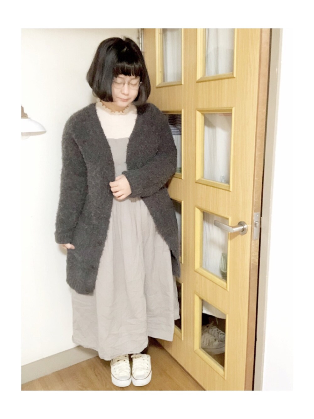 今日は、グレー系のコーデにしてみましたー(⋈◍>◡<◍)。✧♡ モコモコのカーデは、 一昨年買いましたが、 暖かいのでおうちで着るのに最適😋♡