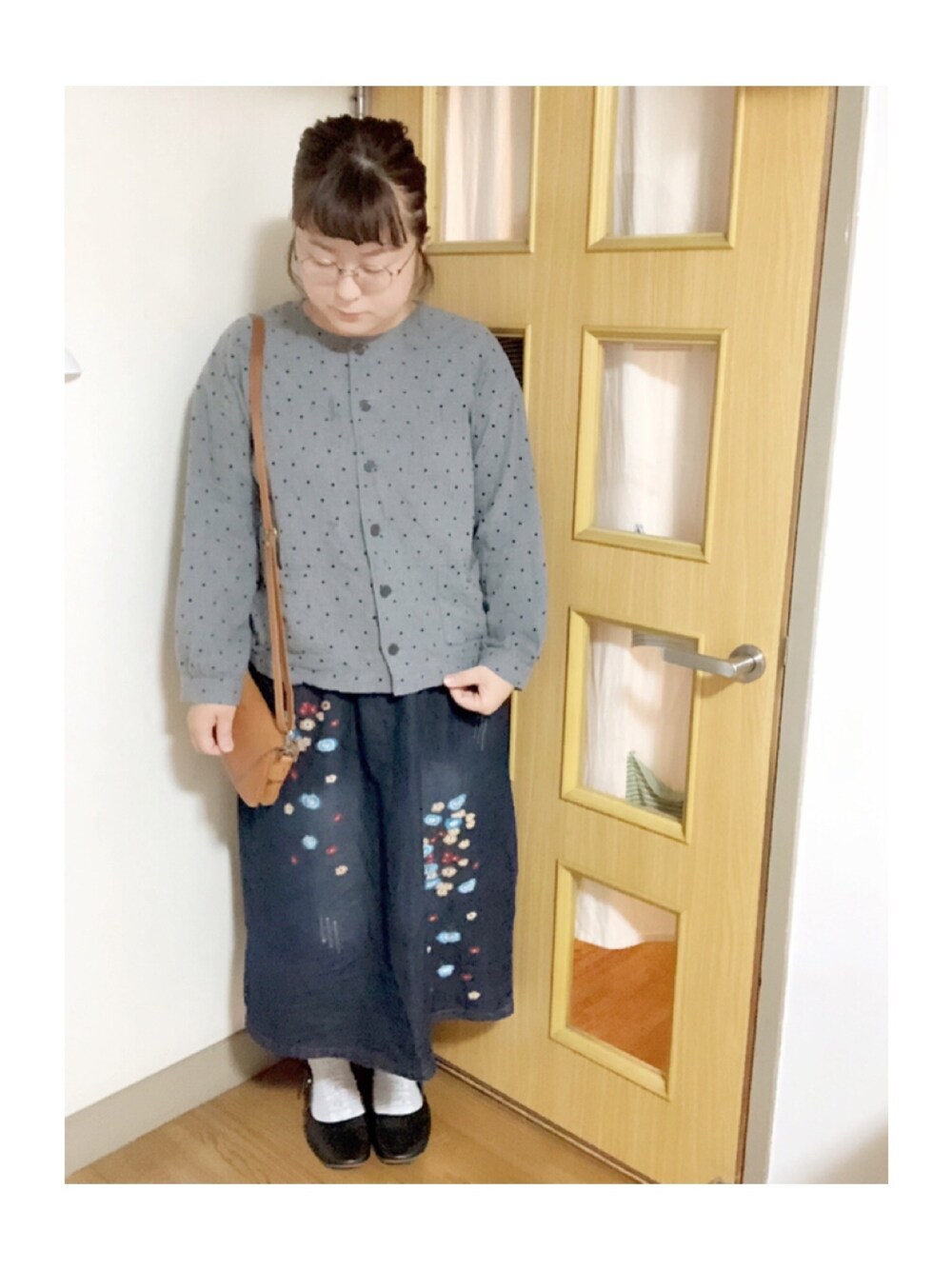 マメӦのシャツ/ブラウス「ドットフロッキー前あきブラウス」を使ったコーディネート