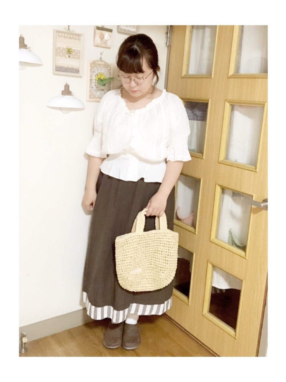 しまむらのトップスは、2年前くらいに買ったものʚ◡̈⃝ɞ 柔らかな生地が着やすいです♫💞 スカートはペチコートなしではスケスケですが(´;Д;`) エプロンぽくてお気に入り( •͈ω•͈)・*♡