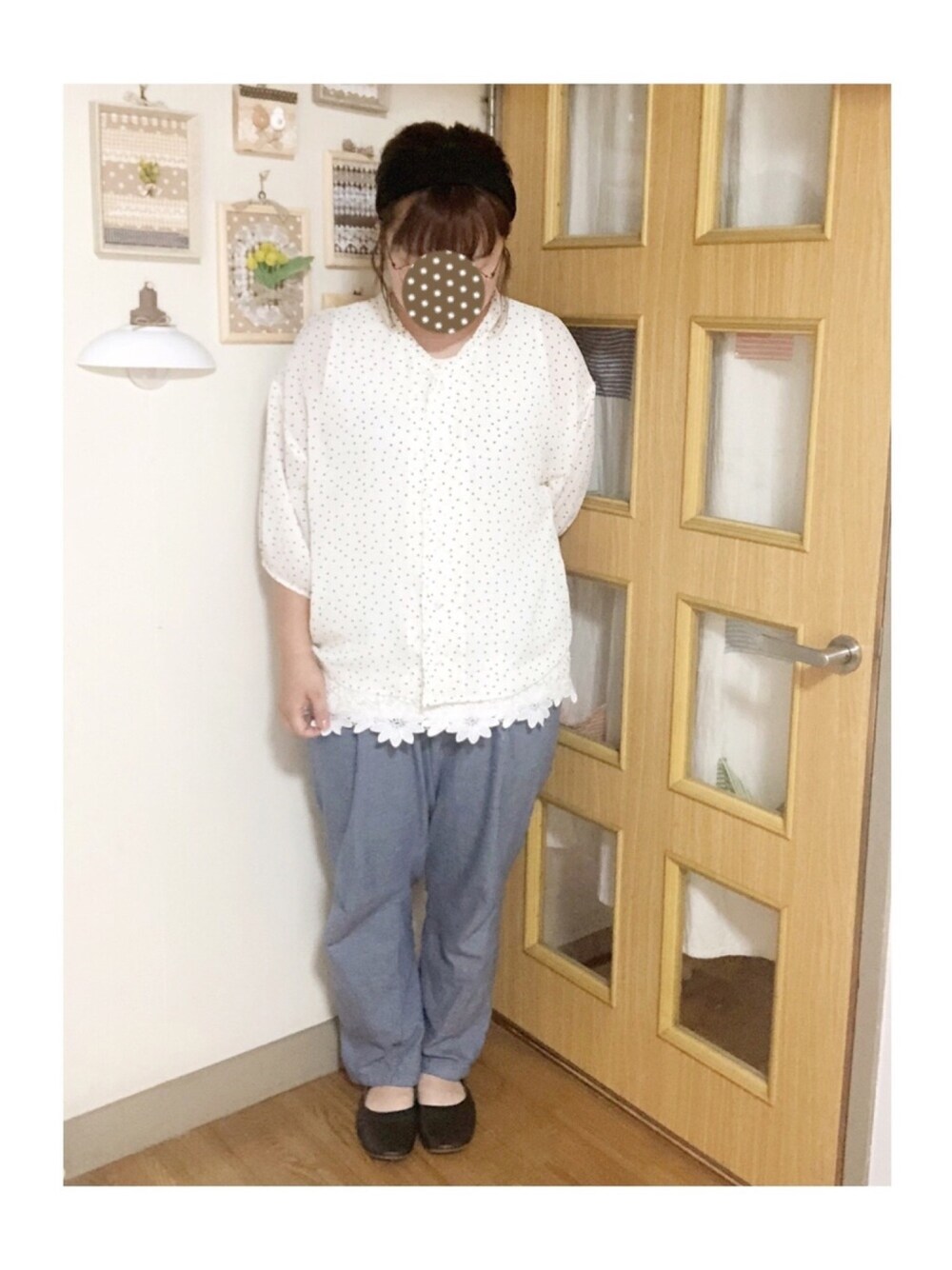 マメӦのシャツ/ブラウス「ドット柄ブラウス」を使ったコーディネート