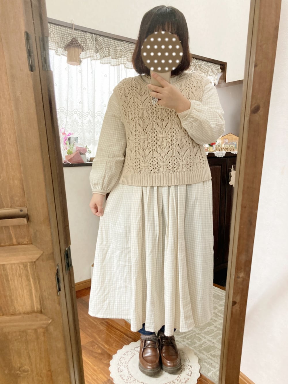 ベージュ系のワンピース/ドレスを着用したレディースの冬コーディネートの1枚目の写真