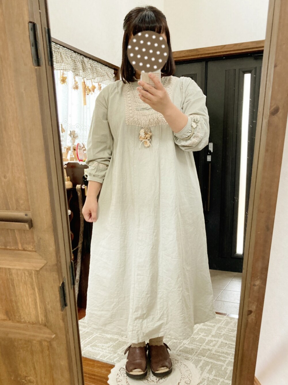 グリーンのワンピに、 新作ハンドメイドのネックレスを💕✨