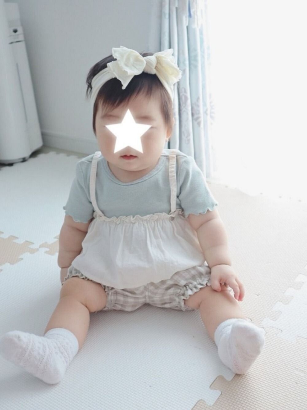 #キャミソール プティマインのキャミソールがくっついたリブT♡♡ 女の子らしいデザインです🤗💠 ミントグリーンな色合いも好き♡ 新作のベージュ×チェックのかぼちゃパンツを合わせました♪ 小窓に断念した🕶️バージョンあるので、お時間ある方はぜひご覧ください🤣