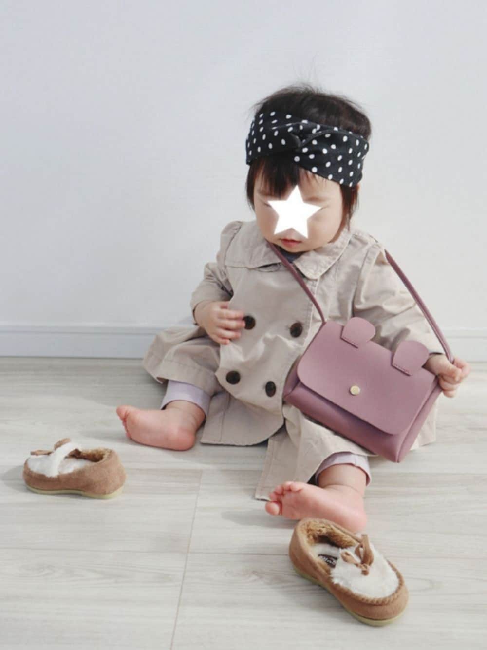 #トレンチコート モカシンがとっちらかっててごめんなさい😂 babygapのトレンチコート♡♡ タックが入っていて女の子らしいデザインです💠 座っているためシルエットがお伝えできないのが残念ですが…😅 レトロな雰囲気を出したくて、ドットのヘアバンドを合わせてみました🤭 ちょっとだけ50年代っぽい?←テキトー ドットのワンピースでレトロコーデとかやってみたいなぁ😳✨