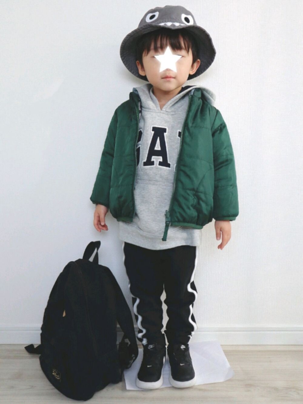 #休日スタイル 本日はパーカー×ラインパンツでラクチンコーデです🤗 何でリュック背負わなかったんだっけな? 忘れました😇 アウターはリバーシブルのやつで、こちら側は初めて使いました🤭 もっと使っておけば良かった😂 来シーズンは娘に着てもらおう🙋♀️