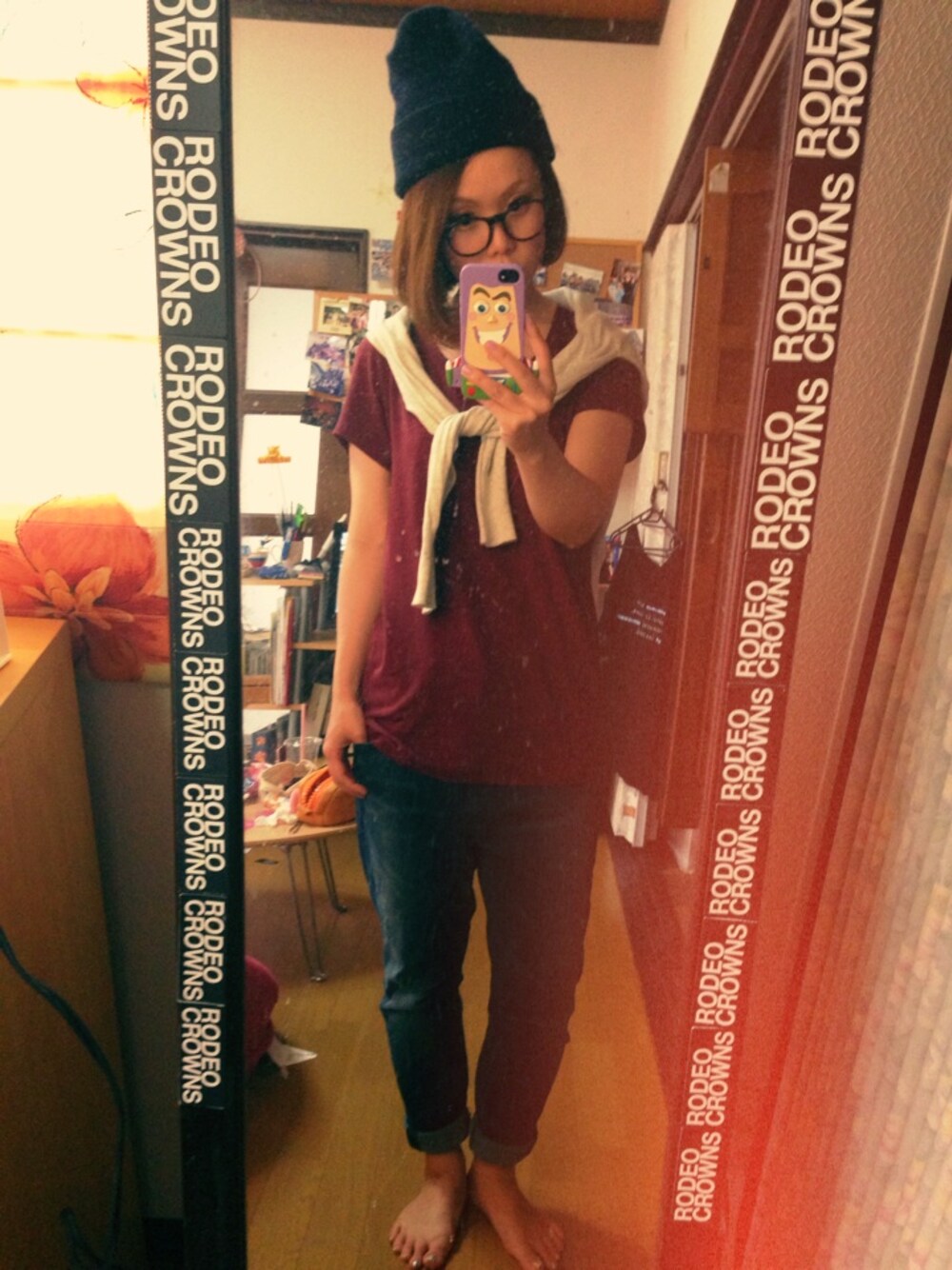ブルー系のデニムパンツを着用したレディースの夏コーディネートの1枚目の写真