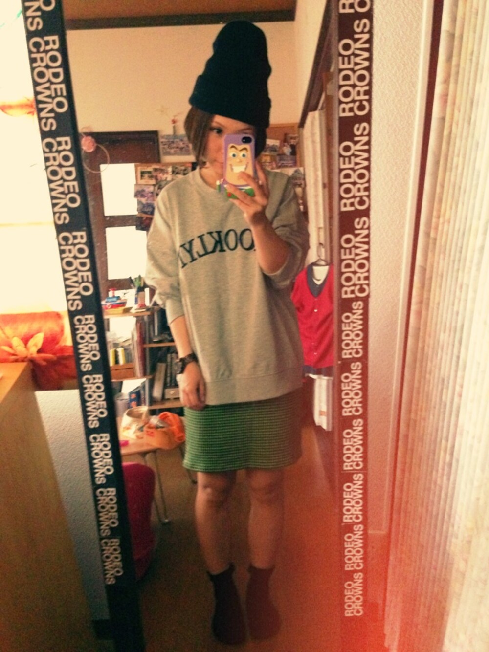 パーカーではないですが… これはお気に入りのセットアップ! みどりの千鳥柄スカートがかわいーのだ!