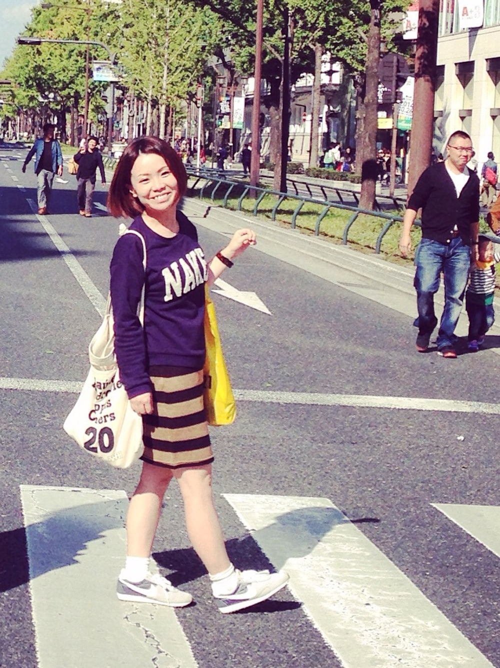 大阪では、大阪マラソンがやっていて、いつもは車がビュンビュン通る大通りも、通行止めに。道の真ん中をおもいっきり歩いたよ。