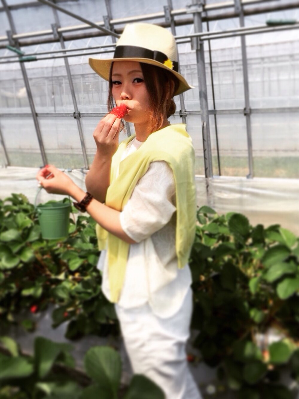 イチゴ狩りなのにホワイトコーデという、チャレンジャー。 汚れなくてよかった。