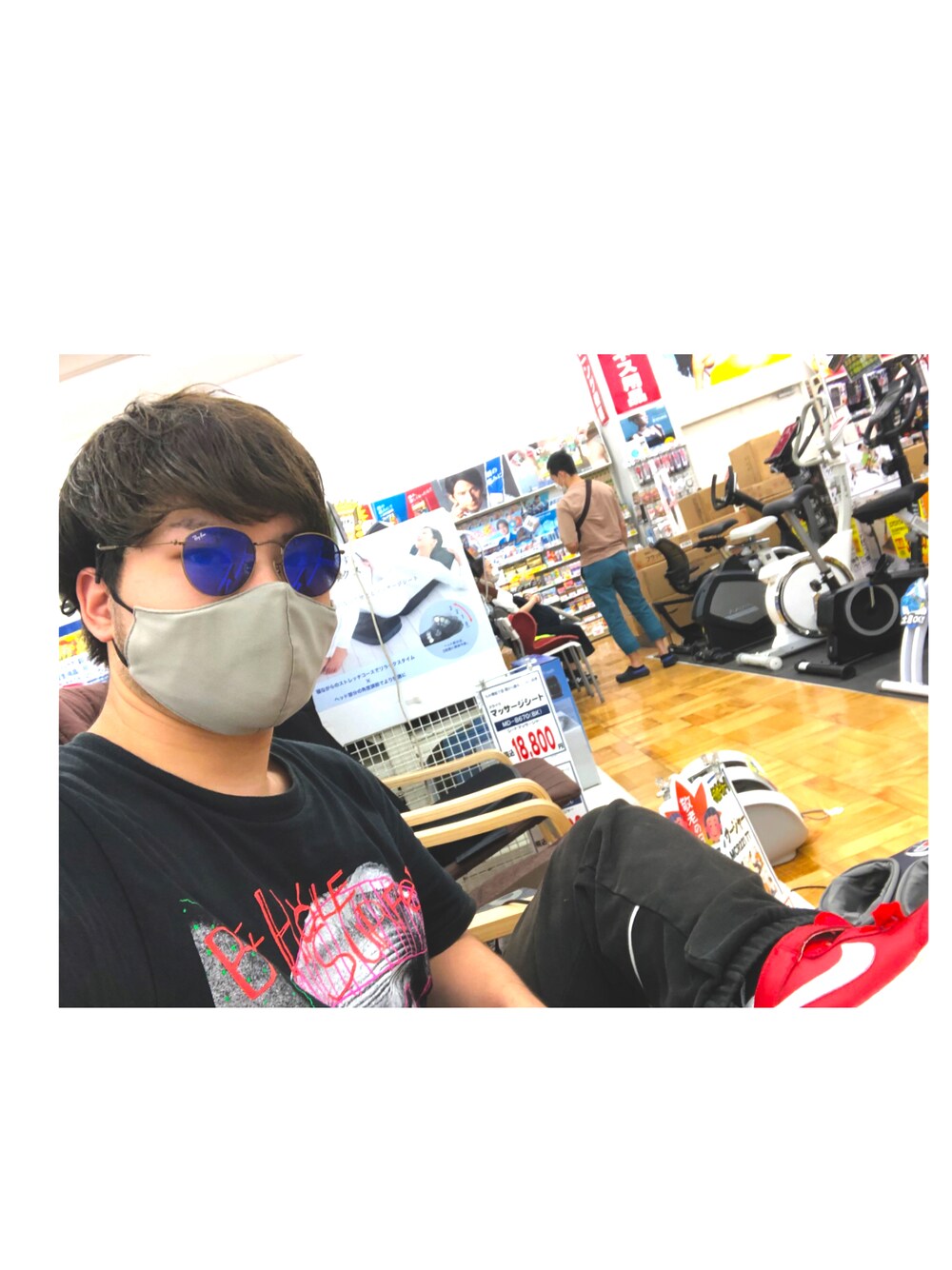 前回の投稿にサングラス足しただけなんでアイテムはサングラスだけ書いときます! マッサージチェアでリラックスしてる図。 結構痛い。。