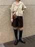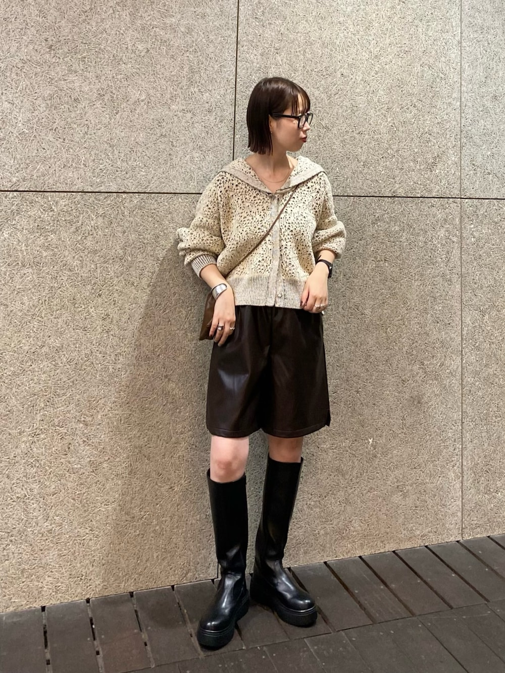 ニットは大きめのセーラー襟がついているので、後ろ姿も抜かりなく可愛いです🥹♡ ボリュームのあるニットには、今年らしくミニ丈のボトム合わせがおすすめです☝🏻✨ ロングブーツは普段23.5センチでMサイズがぴったりでした❕👢