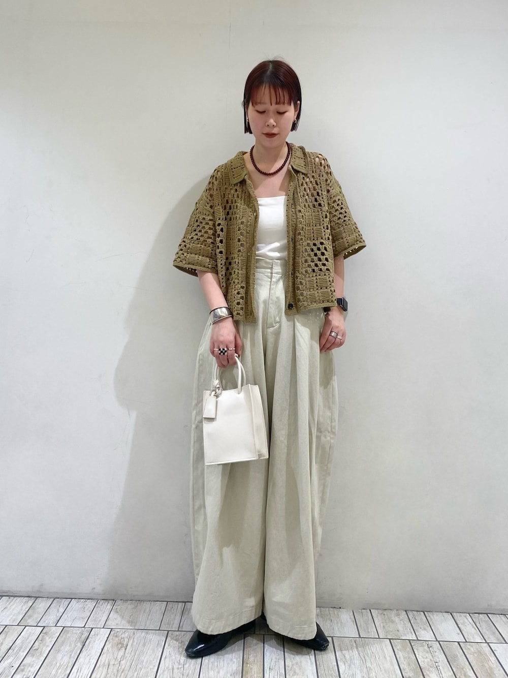 misaki(KBF なんばCITY)のニット/セーター「クロシェニットシャツ」を使ったコーディネート
