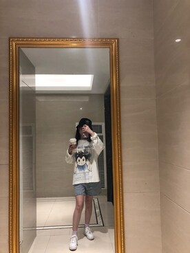 「三叶草のアイテム(キャップ、ブラック系)」を使った、帕妮小牙牙さん(レディース・160cm)の秋コーディネート