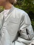 トップガンモチーフのワッペンを配した、オールシルバーのMAー1です! 細身のパンツと合わせてスッキリしたコーデがカッコイイです!