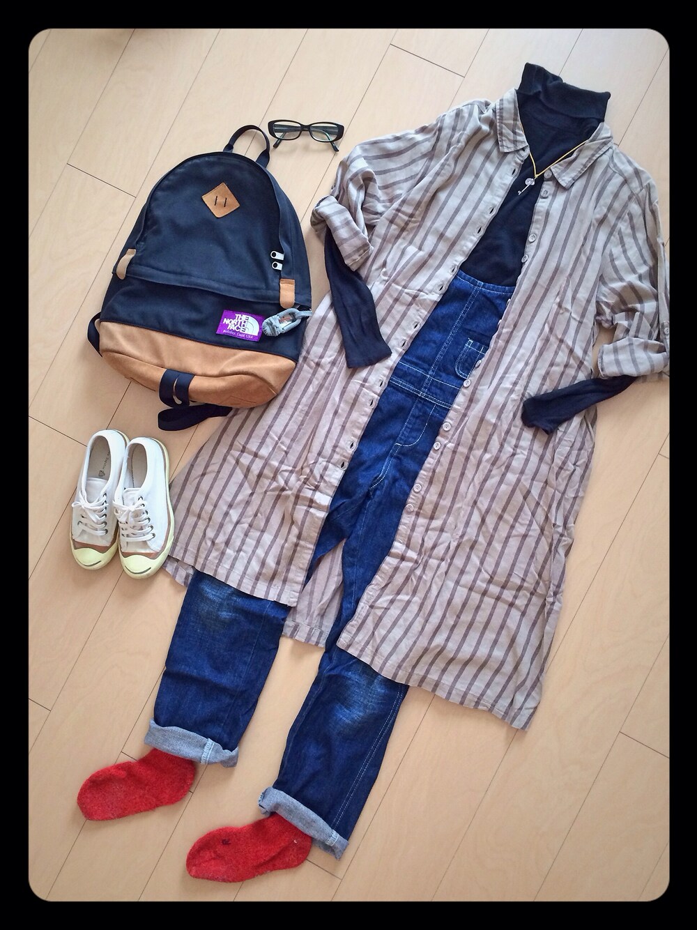 背中と胸があいてるサロペットには こーやって何が羽織るのが好きです 昔ながらのオーバーオールは 外国の農家のおじさんみたいに もさっと着るのが好きです(^o^)♡