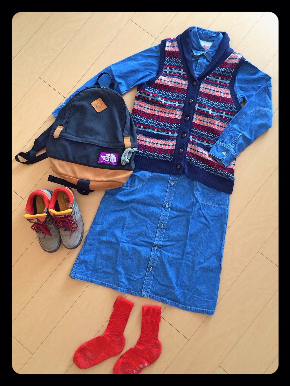 デニムワンピ*OLD BETTYS デニムワンピは丈長めです 生地固めなので正直着心地はよくないけど 可愛いから着ちゃうんです(。-_-。)