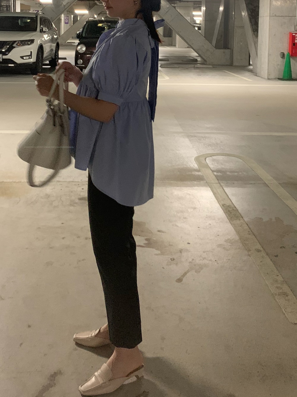 basementコーデ👖。リボン可愛く結ぶのが難しいけど、お気に入りで2色買いしたブラウス♡