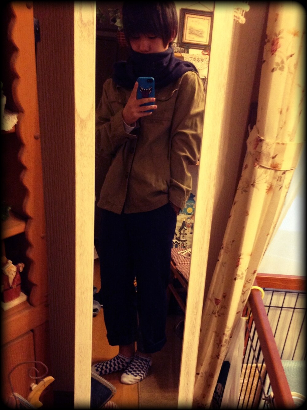 古着屋コーデ アウター:500円 パンツ:500円 マフラー:1500円
