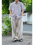 シャツとパンツ、どちらもコットンリネン。気温30度超えたので着心地も大事に。涼しく見える生地感や色味で合わせた。綺麗見えするシャツだけど近付くと可愛い柄なのがお気に入り。
