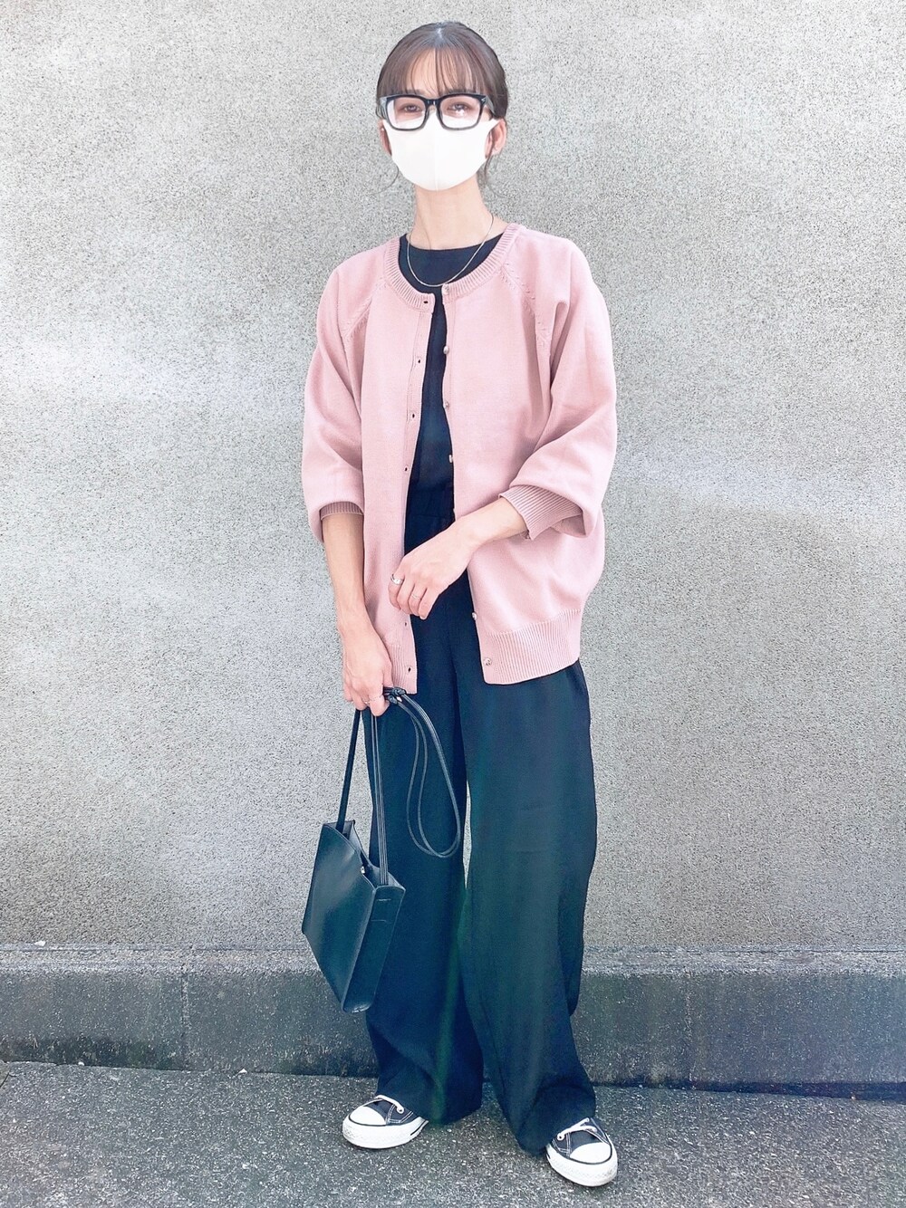 ご覧頂きありがとうございます💭 いつもいいね・SAVE・素敵なフォルダin・フォロー ありがとうございます⋆* ブラックに差し色でピンクを投入🍑 ̖́- カーディガンは異なったデザインを色違いで持ってると ほんと便利ですね(ϋ)/✿*: UNIQLOのウェリントンサングラス👓´- 毎日付けるぐらい気に入ってます♪♪