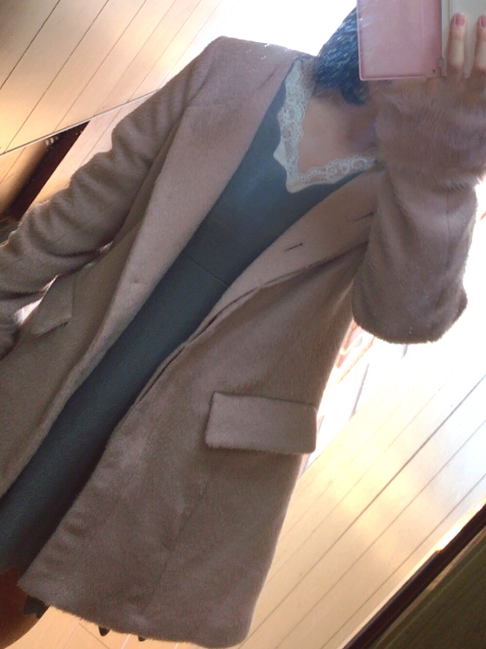 お気に入りのピンクのGRLのアウターにこないだsaleで買ったワンピース👗 中にインナーとして、夏に買ったレースを着てます♡
