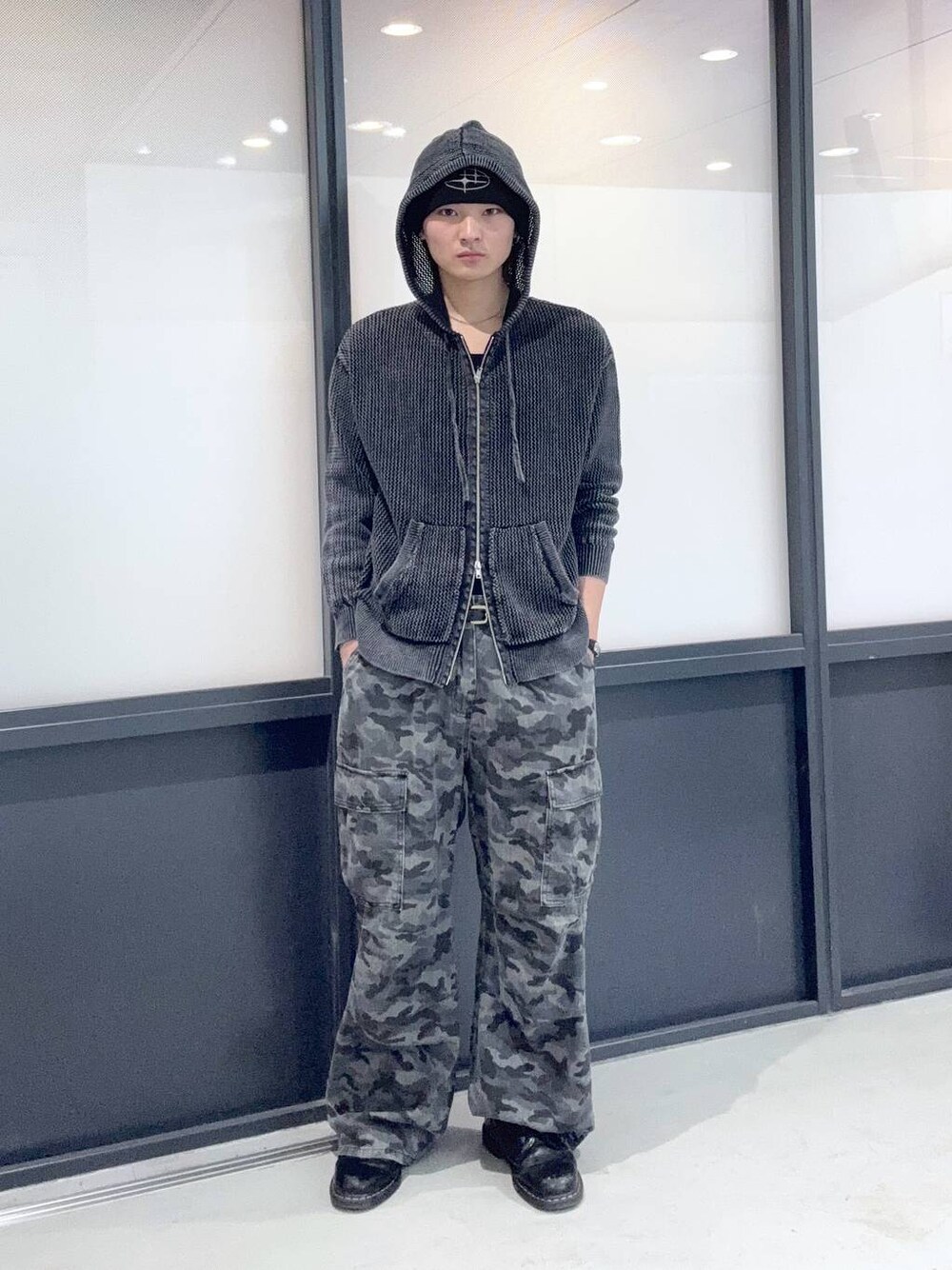 迷彩パンツを使ったストリートコーデ パンツの丈が長めになっているので、足元に溜めるシルエットが好きな方にぜひ!!!!