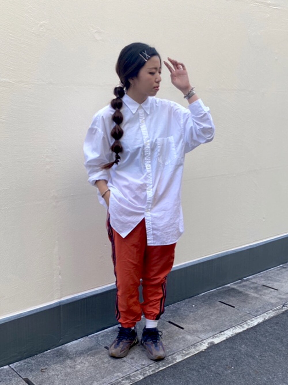 差し色のオレンジが今日のポイント🍊 メンズのオーバーシャツも 本当にかわいいっ!🥰🥰 ひっさしぶりのyeezy700😎 テンション上がるなぁ🥺 でもNIKE派です🤢