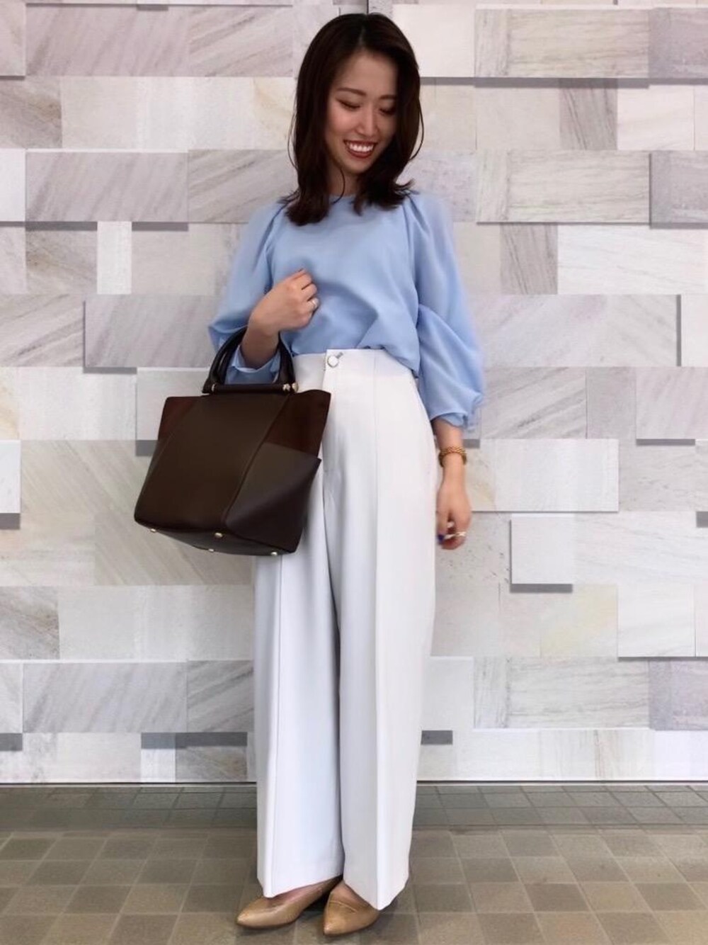 全体の色のコントラストがポイントです! トップスは今トレンドのシアー素材でキレイめなパンツと合わせる事で女性らしいコーディネートに。 トップス(FREE) パンツ(36サイズ)