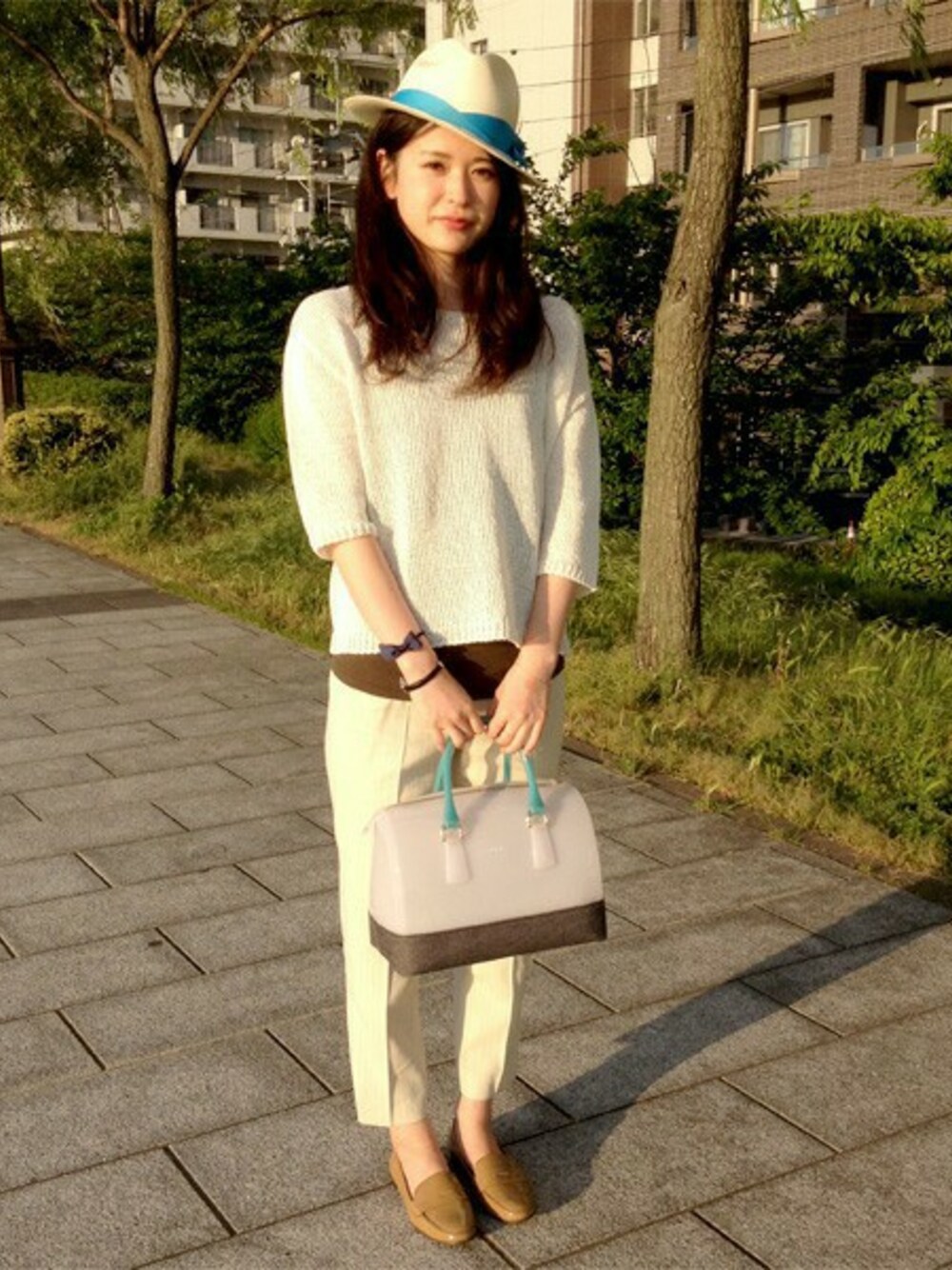ユナイテッドアローズ 新潟店STAFF 白を基調にしたマニッシュなスタイリングです。これからの季節に使いやすいニットにカーキのタンクトップを重ね、ホワイトのストライプパンツにローファーを合わせてマニッシュ感を演出しました。バッグとハットにブルーを用いることで爽やかさをプラス。これからの時期、暑くなりますが、こんなおしゃれをしてショッピングに出掛けてみてはいかがでしょうか♪