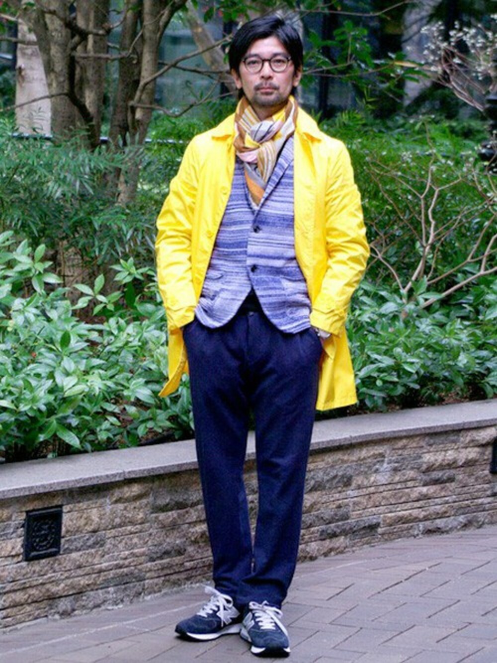 派手なコートと、色柄に癖のあるストールを合わせてみました。今季は、さまざまな色のアイテムが揃っておりますので、全身とは言いませんが、1点だけでも鮮やかな色目を挿してみるのも良いと思います。